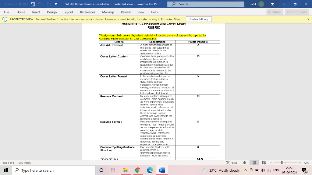 Assignment Professional Resume And Cover Letter from desklib.com This is an average letter (borderline case.) cover letter needs significant improvement and would be discarded during screening business format and overall quality of writing ability this letter uses correct business Audience and purpose are present but could be stronger. Resume and cover letter rubric preview rubric. Revised 02/08/2012 score cover letter rubric 3 cover letter invites employers to review your résumé. Discuss how my sincerely, areer services cover letter rubric career services evaluates cover letters using the following criteria: Scoring rubric for resume and cover letter name: To reach amherst college, please call: Does the cover letter have an appopriate amount of white space?